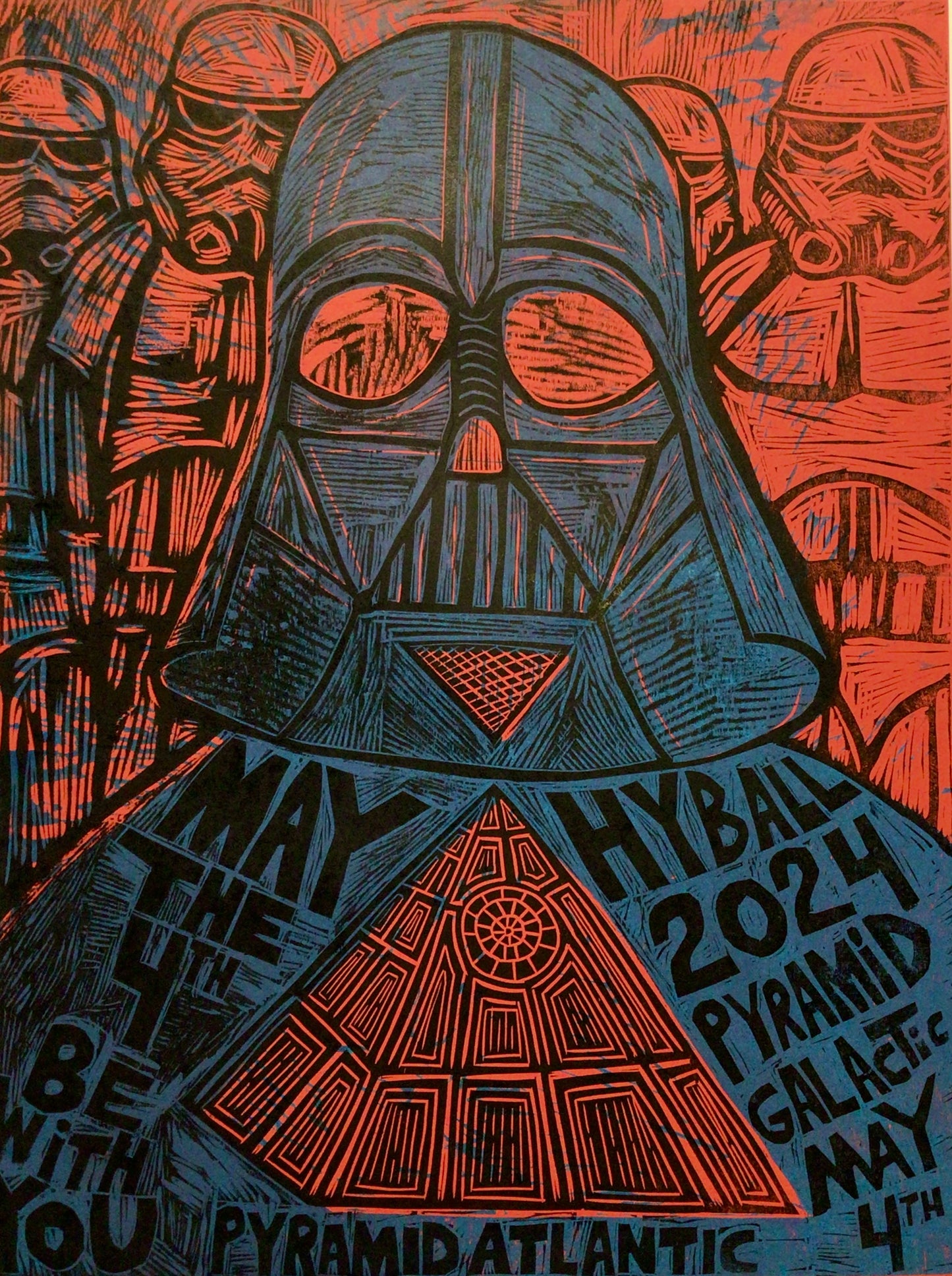 HyBall Pyramid Galactic 2024 Woodcut print by Sean Starwars! 18X24, printed at Pyramid Atlantic!